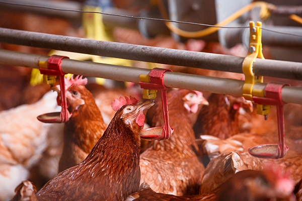 In laying hens, extreme hardness levels, above 500 mg of calcium carbonate, in drinking water, limit the absorption of calcium in the intestine, essential for the formation of the eggshell