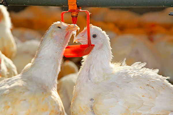 The mineral salts of calcium and magnesium do not have a direct relationship with the biofilm, but it is an indirect biofilm development factor since the roughness caused by the precipitation of these salts on the water pipes and drinkers makes it easier for the adhesion of the biofilm and protection of microorganisms. Calcium always precipitates more when the water velocity is lower, for example, there will be a greater possibility of calcium precipitating in the first week of the life of the chicks, due to the low water consumption. In addition, at this time the temperature can reach 30ºC, and the higher the water temperature, there is usually more precipitation. Calcium can cause problems in all water misting systems, since it blocks the mists, both in systems for supplying humidity within the farm, as well as supplying humidity in hatchers.