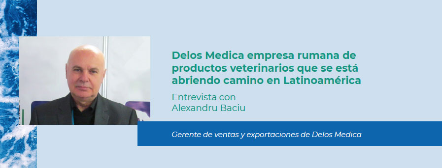 Delos Medica, una prestigiosa empresa en el mercado rumano, ha consolidado continuamente su posición en el campo de la fabricación y distribución de productos veterinarios. Sus productos están orientados al área de la avicultura, porcicultura, rumiantes y acuicultura. El objetivo de esta empresa es expandirse en países de la Unión Europea como en América Latina, así nos comenta su gerente de ventas y exportaciones Alexandru Baciu. Asimismo, nos indica que el nombre Delos proviene de la isla griega, donde se guardaba el principal tesoro manteniéndolo protegido por leones. Por lo cual, explica que el nombre de la empresa Delos significa “estamos guardando un tesoro, ya que creemos que la salud es un tesoro que debe ser resguardado”