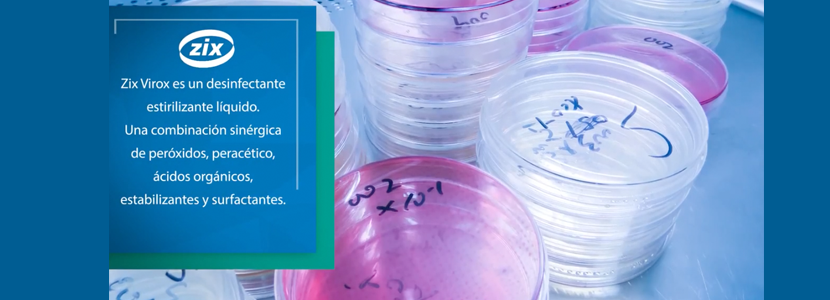 ZIX VIROX, es un desinfectante esterilizante líquido, su gran capacidad de desinfección se debe a una combinación sinérgica de peróxidos, peracético, ácidos orgánicos, estabilizantes y surfactantes.